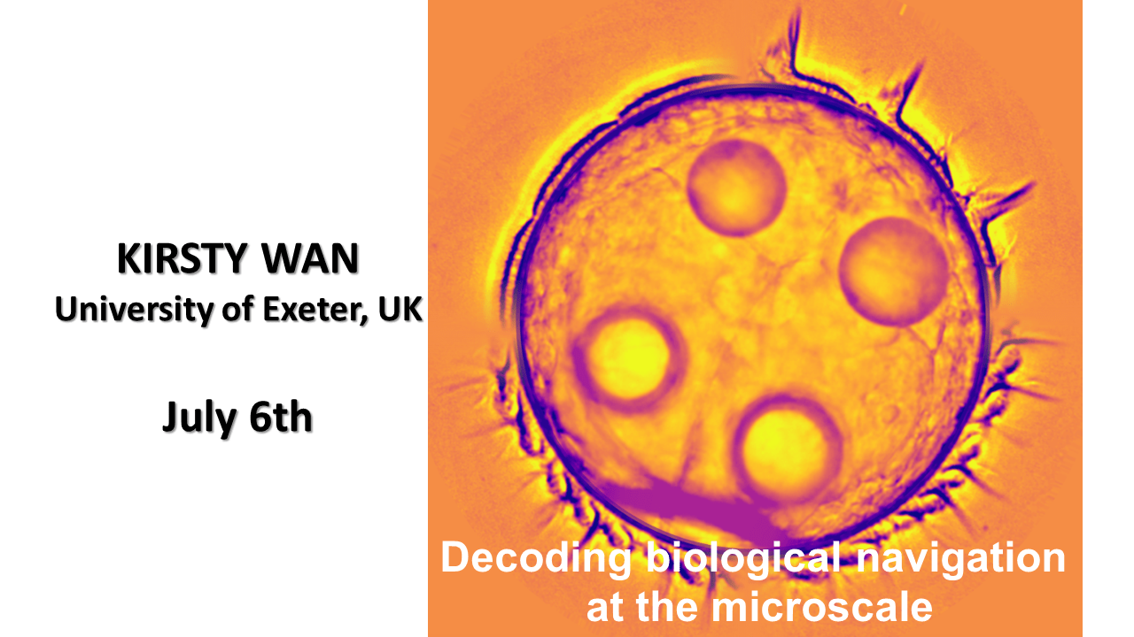 How do single cells and small aquatic organisms coordinate complex behaviours and navigate their world with little or no centralised control? In this talk, I will explore how diverse microscale motility and navigation strategies emerge from the interplay between coordinated actuators, such as travelling (“metachronal”) waves of cilia and flagella, and the external physical environment. We adopt an integrative approach connecting sub-cellular dynamics to whole-organism motility and behaviour across a wide range of spatial and temporal scales. Combining quantitative live imaging, micro–manipulation experiments, single-cell trajectory tracking, computational and physical modelling, we reveal how distinct motility strategies give rise to directed movement in both 2D and 3D. We also examine how symmetry-breaking processes contribute to steering and adaptive responses to external stimuli, such as light or chemicals. We develop a generalised framework to study and simulate microswimmers to examine the functional ecology of their motility patterns, allowing us to predict the impact of key variables such as body morphology, appendage number, or actuation dynamics. This multiscale approach helps yield general principles of locomotion control in active matter systems.