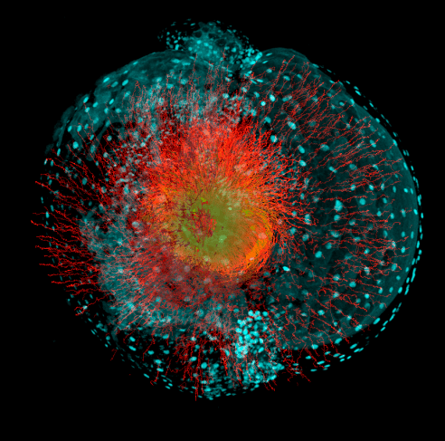We use 3D+time imaging of transgenic reporter lines in which we label neutrophils, macrophages, and fibroblasts. We detect RNA and protein expression profiles to identify cell identity and function. We characterize the ECM composition and texture using STED microscopy. These approaches show the spatiotemporal dynamics of cells and the ECM during tail fin regeneration.
