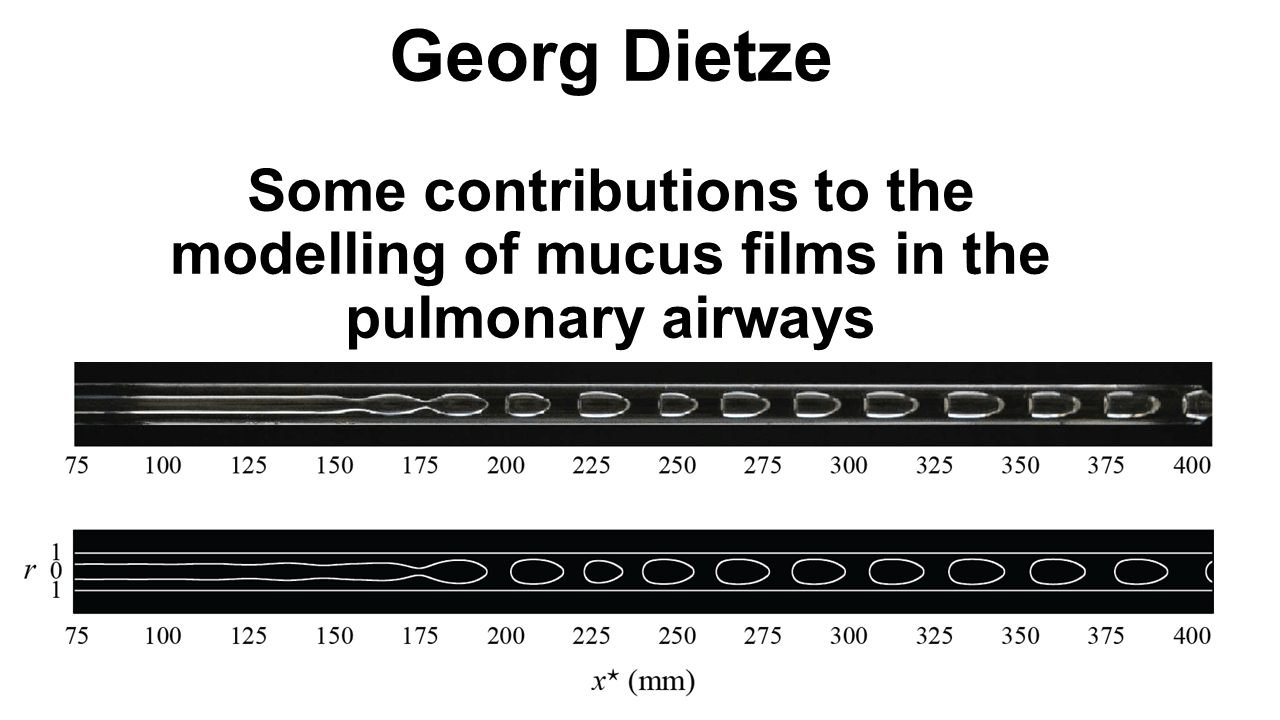 Mucus films coating the inner surface of the pulmonary airways in the human tracheobronchial tree perform the important task of capturing alien particles and pathogens from inhaled air. This configuration is associated with two hydrodynamical problems that are closely linked to different pulmonary diseases: (1) mucociliary clearance (MCC), i.e. the evacuation of mucus toward the trachea through the coordinated beating of cilia, which can break down due to a change in mucus rheology, e.g. in the case of cystic fibrosis, where the elastic response of mucus becomes dominant; (2) liquid plug formation due to the Plateau-Rayleigh instability, e.g. as a result of mucus hypersecretion in chronic obstructive pulmonary disease. In order to identify possible levers to avoid such catastrophic events, e.g. in the context of drug development, a reduced modelling of these flows, preferably at the scale of the entire tracheobronchial tree, can be a valuable asset. In this talk, I will present two modelling contributions for the above-introduced problems. In the first case, we developed a continuum model of MCC based on a Navier boundary condition due to Bottier et al. (PLoS Comp. Biol., 2017), which mimics momentum transfer from the beating cilia, and used this model to study the effect of mucus viscoelasticity on MCC. In the second case, we applied the weighted residual integral boundary layer (WRIBL) technique of Ruyer-Quil and Manneville (Eur. Phys. J. B, 2000), which relies on the long-wave approximation, to represent the formation of liquid plugs from annular liquid films. We then applied this model to predict plug formation across the conducting zone of the tracheobronchial tree, based on the lung architecture model of Weibel, and to assess the potential for epithelial cell damage due to the associated wall stresses.